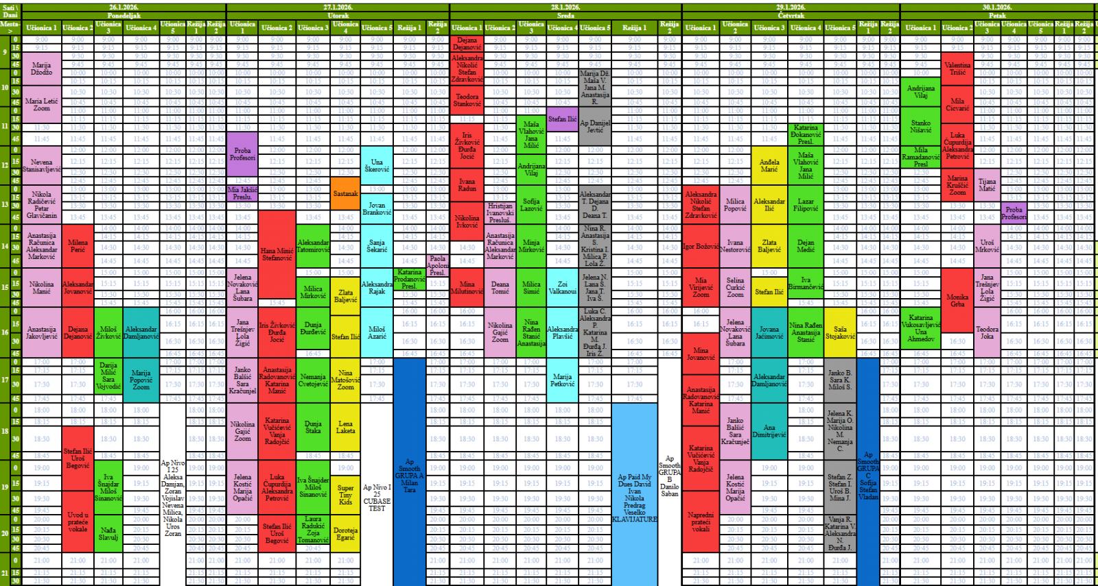 RASPORED ČASOVA 26.1.2026 - 30.1.2026.